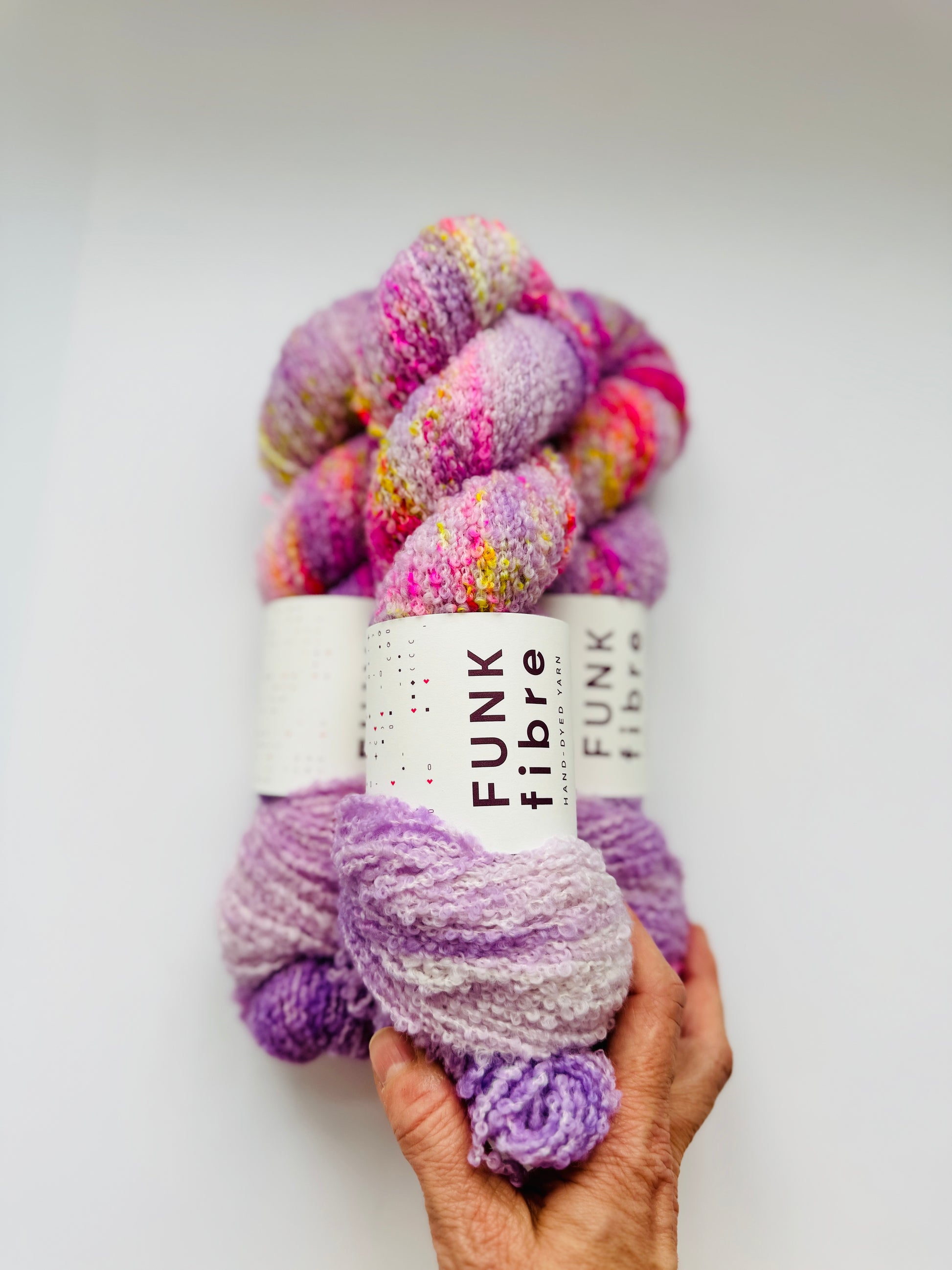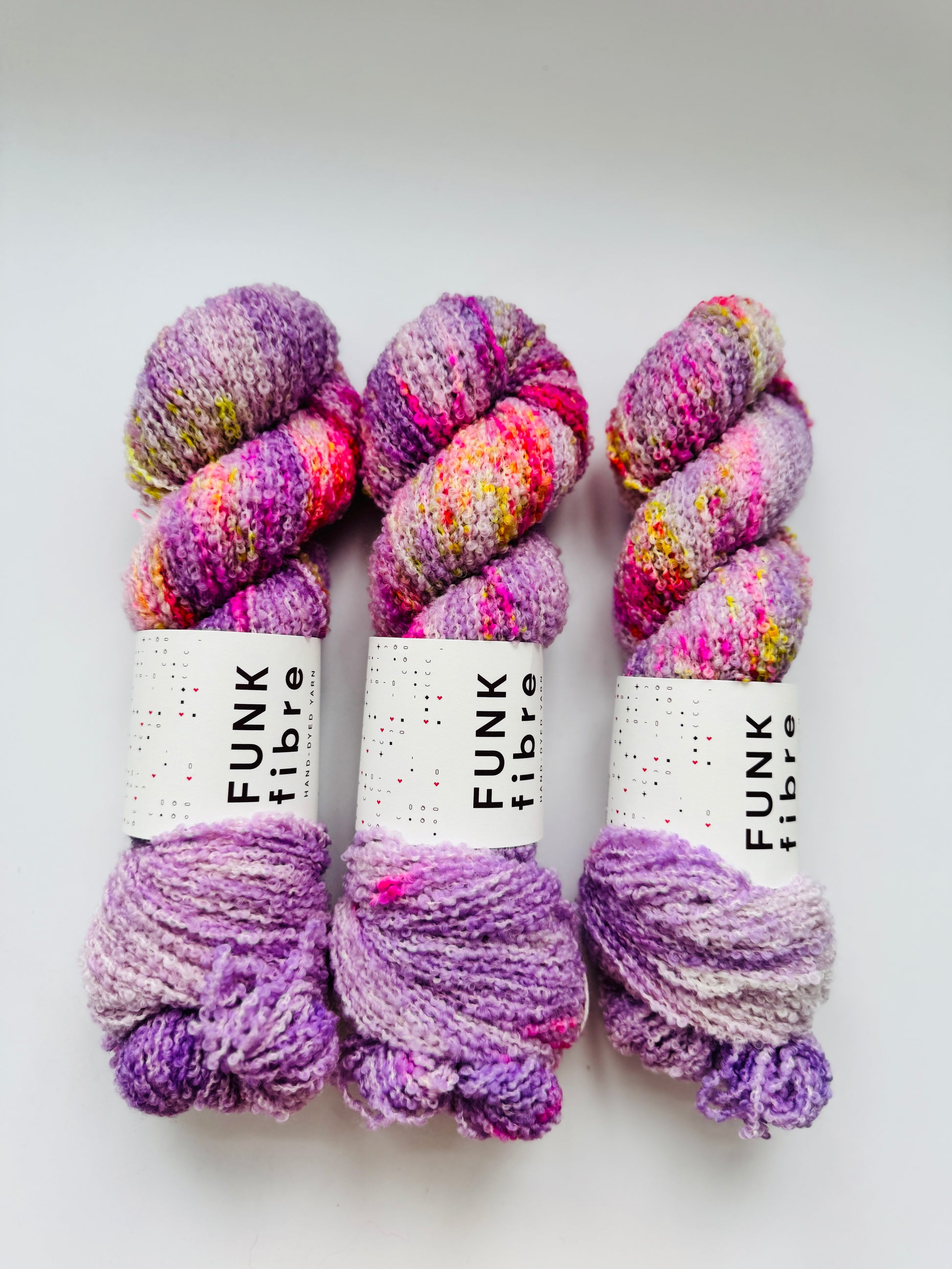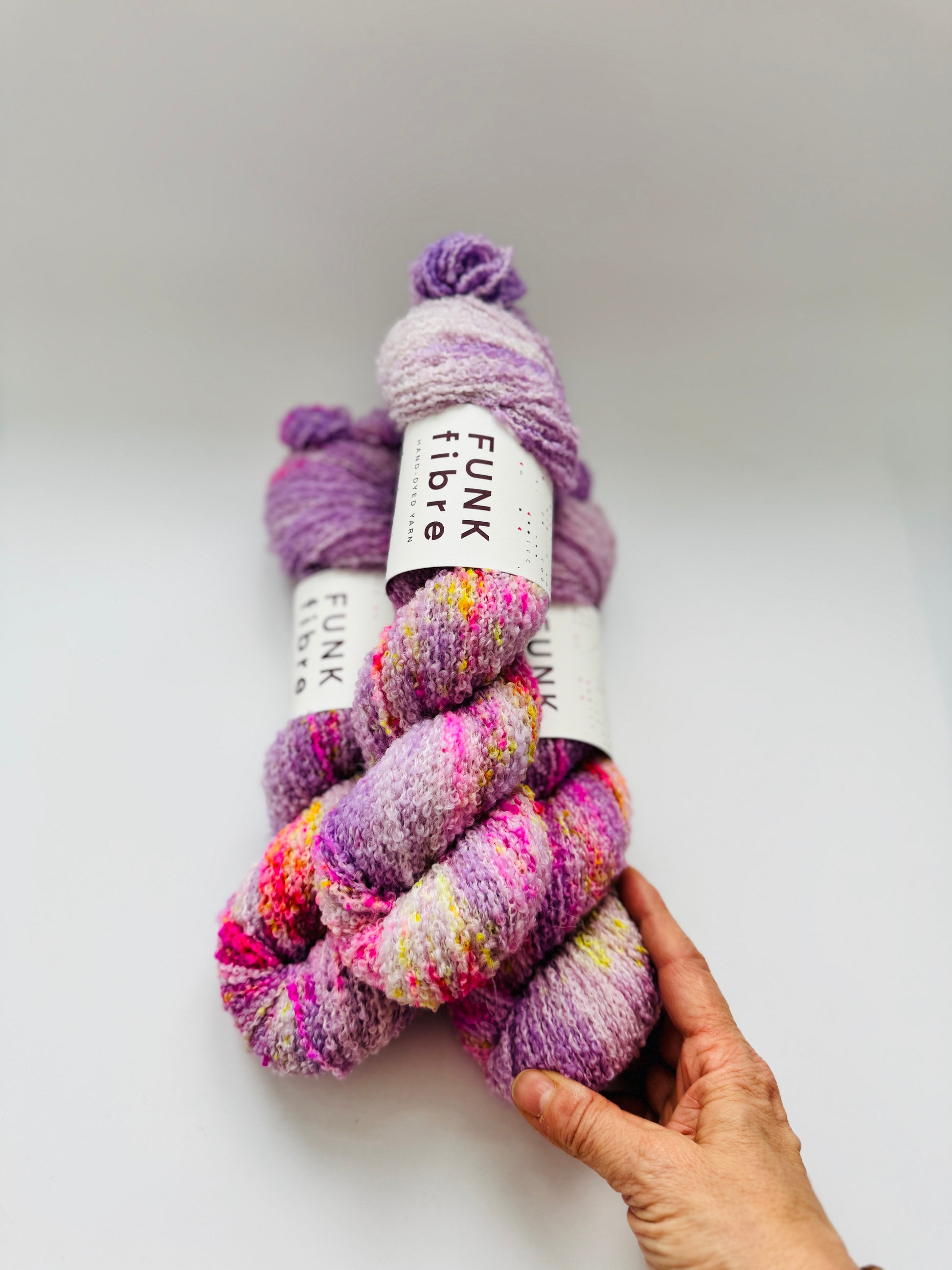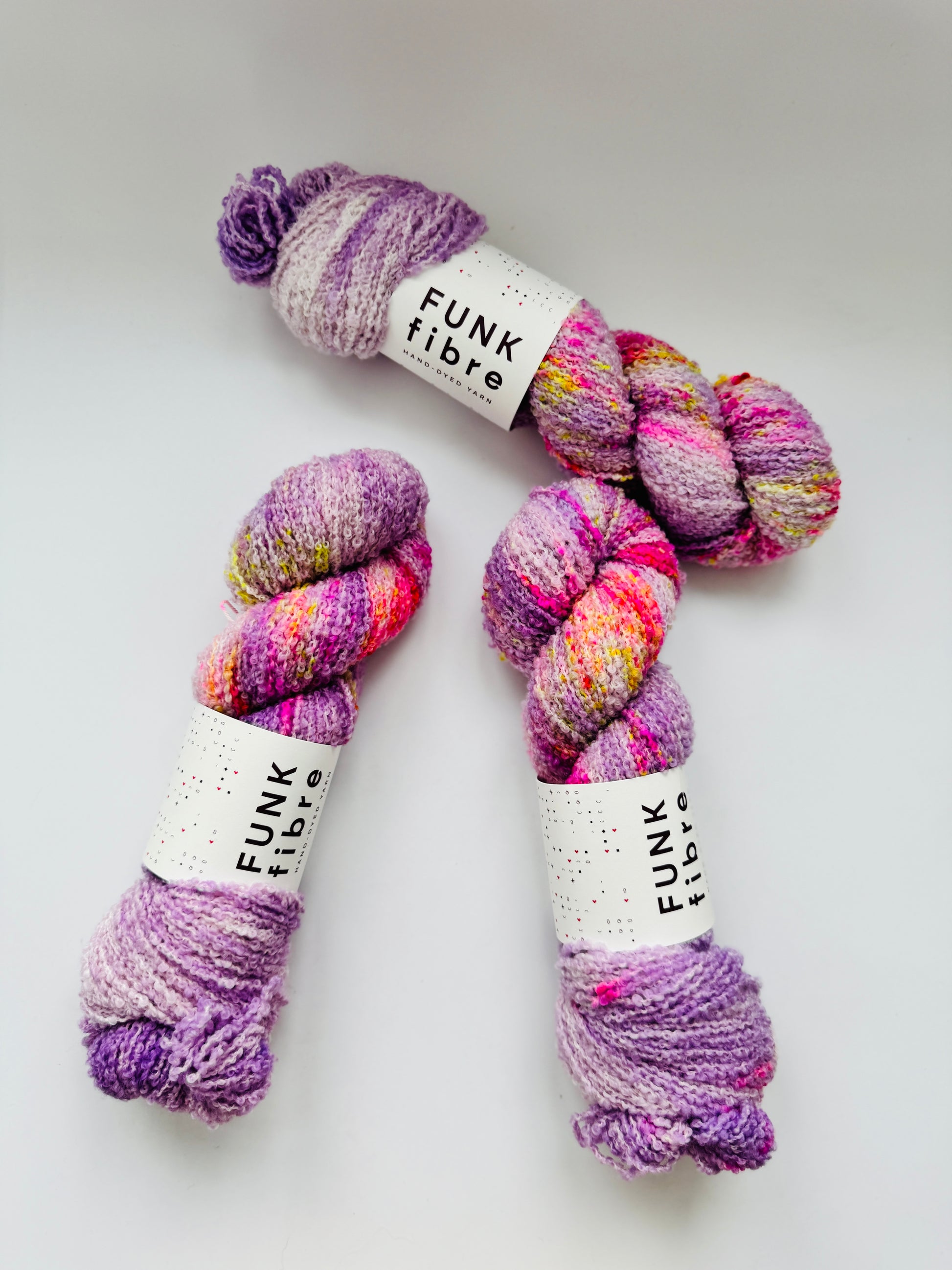 Bouclé DK Garn aus 100% Merinowolle - natürlich Mulesing frei.